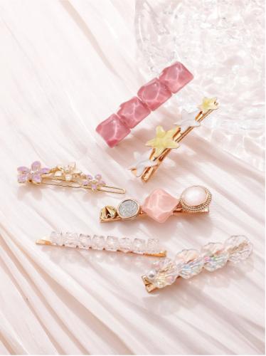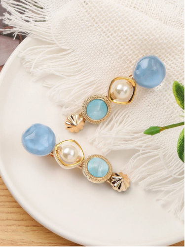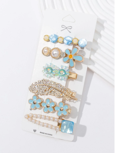 Set 6 agrafe de par cu pietre strass si perle Blue Flower